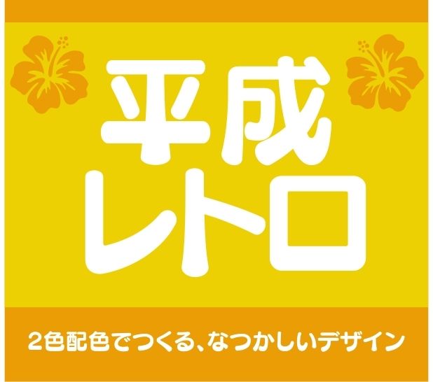 こちらのバナー制作には、2色配色+白文字をベースにした、平成レトロらしいカラーリングを使用しました。